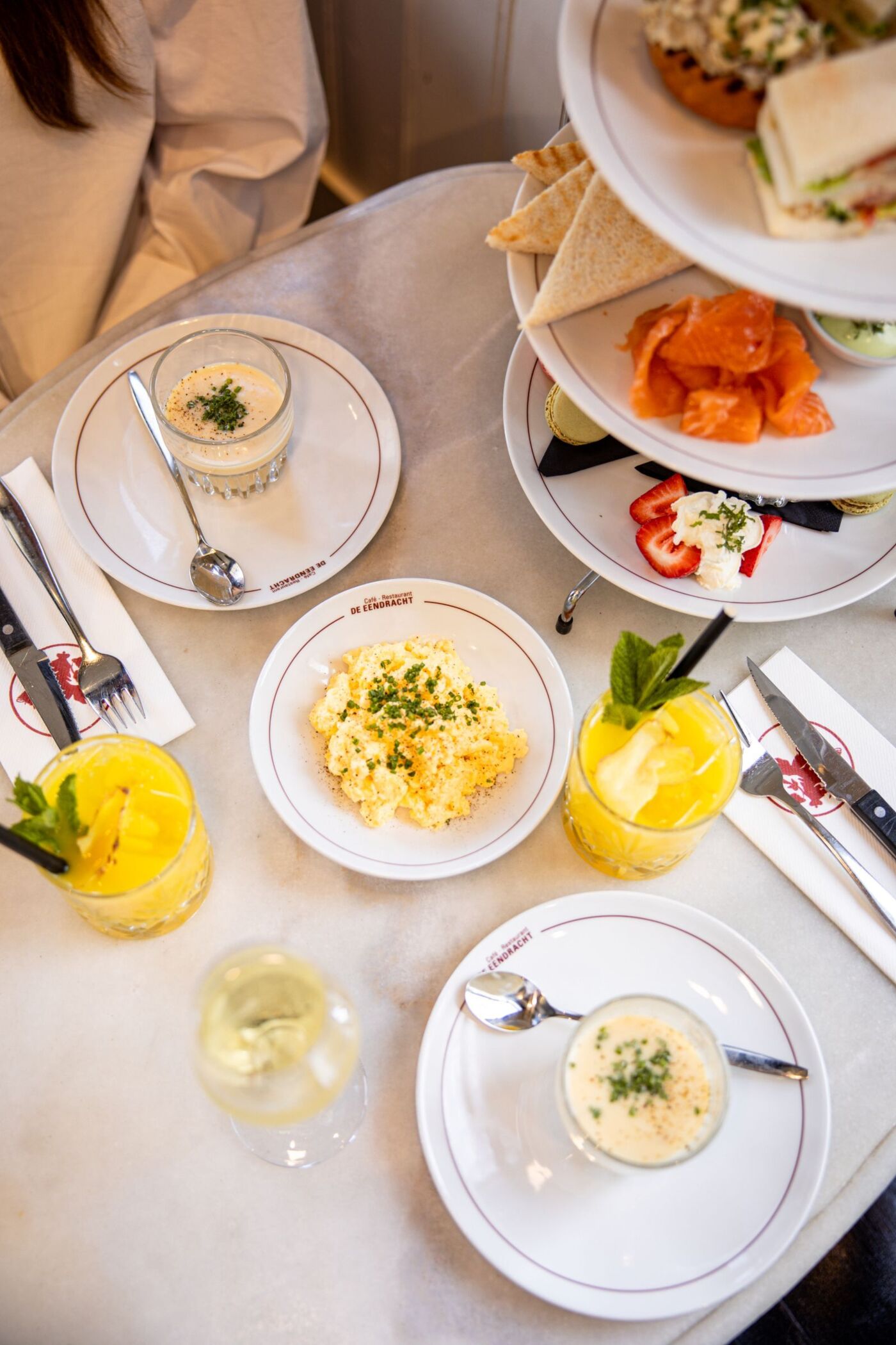 €34,50 per persoon, inclusief een glas jus d’orange en een koffie of thee naar keuze